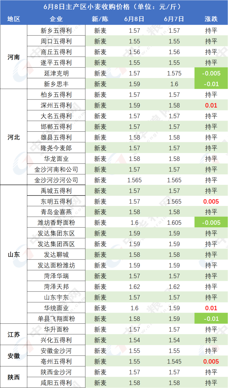 中储粮焦作直属库:收购价格1.52-1.54元/斤。