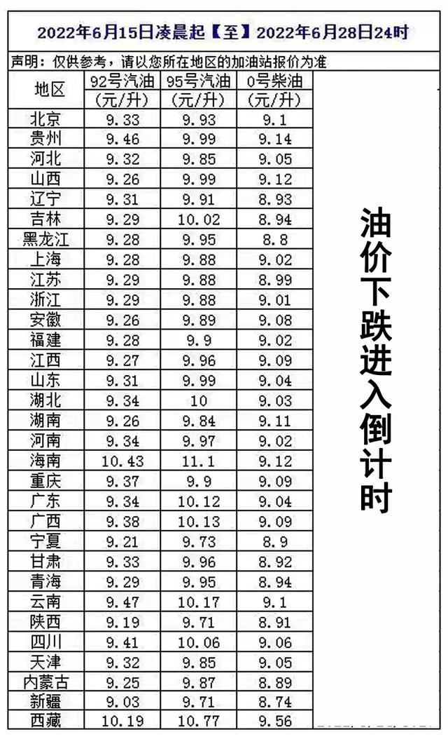 受国际油价走低,本轮计价周期第八个工作日,国内综合油价回落4.89%,预计,油价下跌或将维持在260元/吨左右,折合国内汽柴油价格或有0.2元/L的落价,目前,距离6月28日24时油价调整仅有2个工作日,受国际市场看跌情绪发酵,预计,国内油价大概率跌幅会继续放大,届时居民加满一箱油要少花10~15元左右!