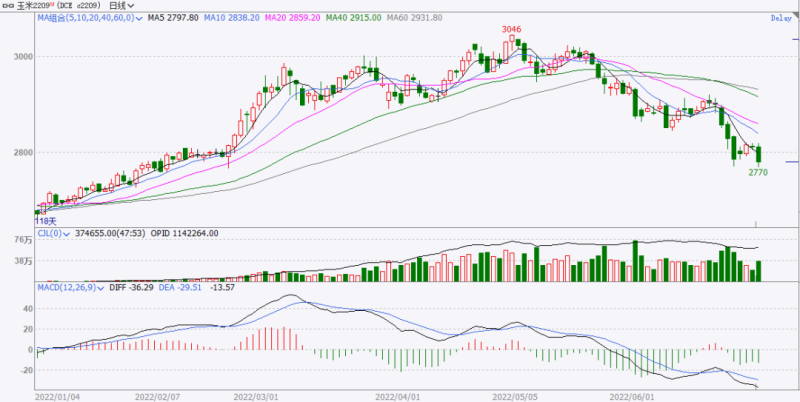 今年以来,玉米2209合约从年初不到2700元/吨上涨到最高的3050元/吨附近,然后又跌破2800大关,波动较大,尤其是5月1日到现在的这次回调,将俄乌冲突以来的涨幅全部抹掉。6月连玉米主力累计下跌155元/吨,跌幅5.28%,连续两个月下跌。