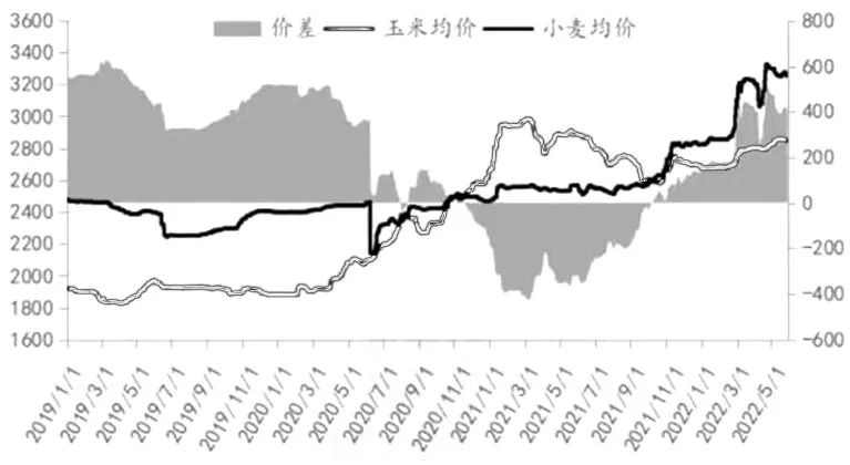当前小麦价格偏高,小麦和玉米价差处于高位,部分地区小麦与玉米价差达到400元/吨,对玉米价格有一定的支撑。即使后期新小麦上市小麦价格略有回落,预计玉米价格下跌空间也有限。