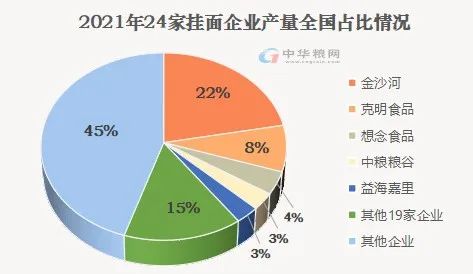 其中,在挂面领域,排名第一位的是金沙河,占全国挂面合计产量比例为22%;第二为克明食品,占比达8%;排名第三的是想念食品,占比达4%。