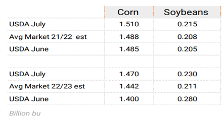 天气预报显示,温度会继续高于正常水平,这通常会对最终产量产生负面影响。因此,大豆产量低于平均水平的风险依然存在,因为 8 月份的天气将显著影响最终产量。此外,请记住,由于今年播种进度的延迟,我们仍然面临着晚霜损害的风险。