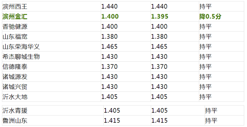 山东德州益海嘉里:涨1.0分,普麦1.555元