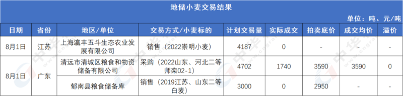 图2:8月1日地储小麦交易结果