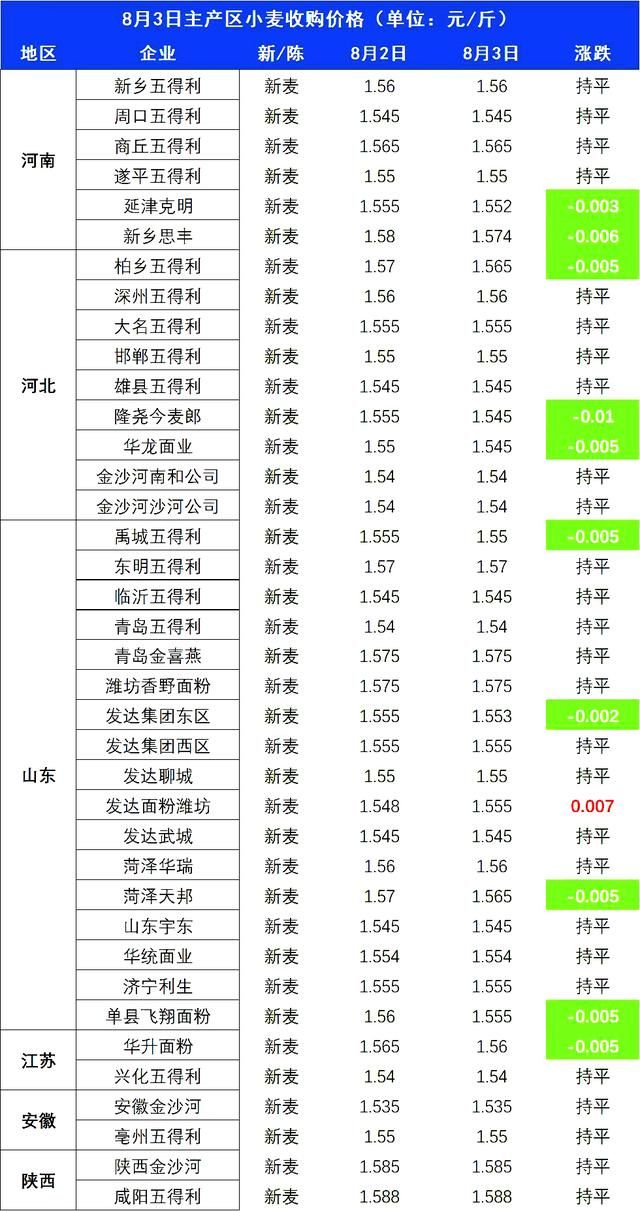 据了解,在国内小麦市场,近期,小麦到厂报价偏高的部分厂家,小麦到货量猛增,企业按车报价,落价表现突出,小麦价格反弹压力较大,市场短期内或将延续偏弱的走势,不过,从企业调价幅度来看,小麦落价表现相对温和,这也反映出用粮企业情绪上仍有补库的需求!