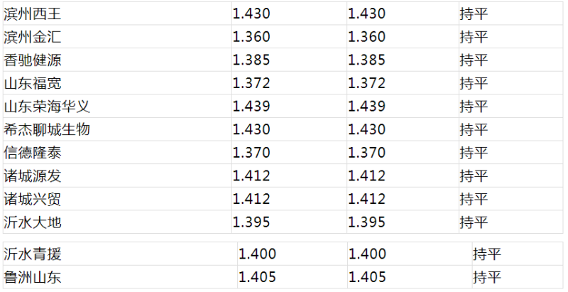 河北金沙河南和,沙河公司:涨0.5分,普麦1.550元。