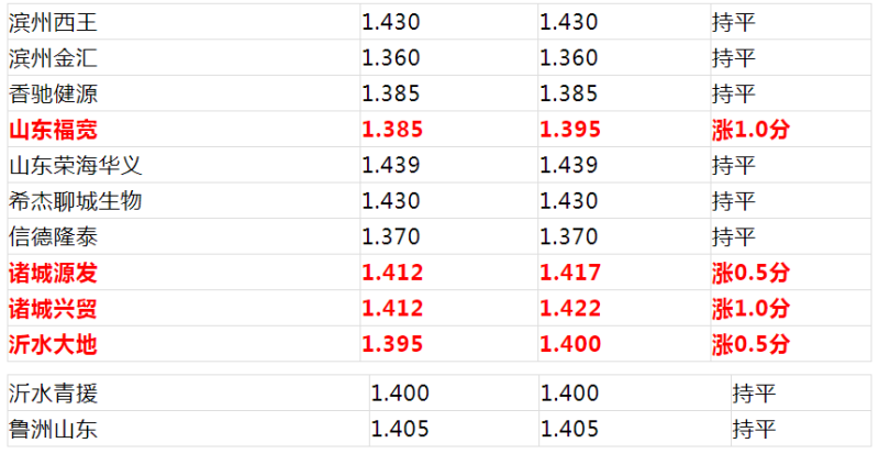 山东德州益海嘉里:涨0.5分,普麦1.555元