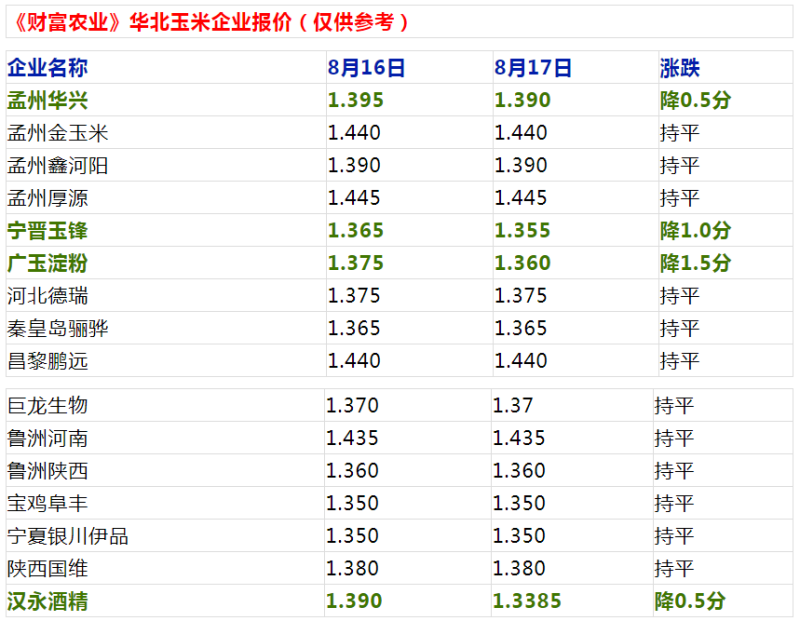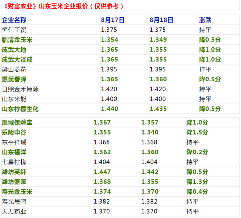 山东武城丹顶鹤:落0.5分,普麦价格执行1.545元/斤。