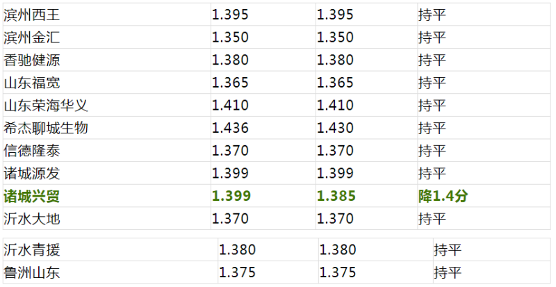 山东菏泽华瑞:落0.5分,普麦1.558元。