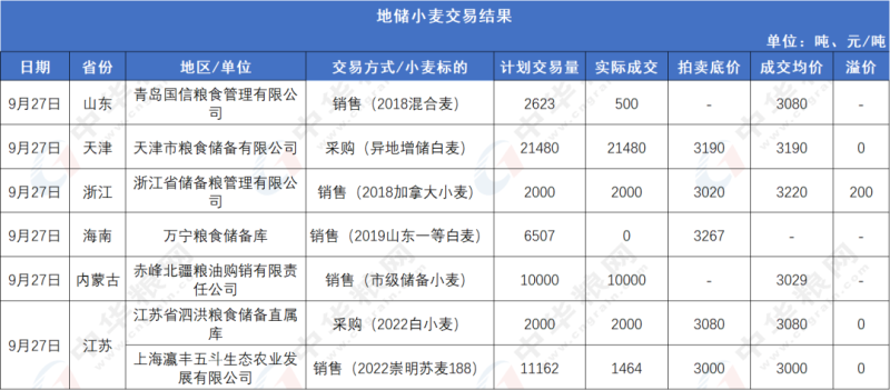 图2:9月27日地储小麦交易结果