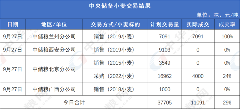 图3:9月27日中央储备小麦交易结果