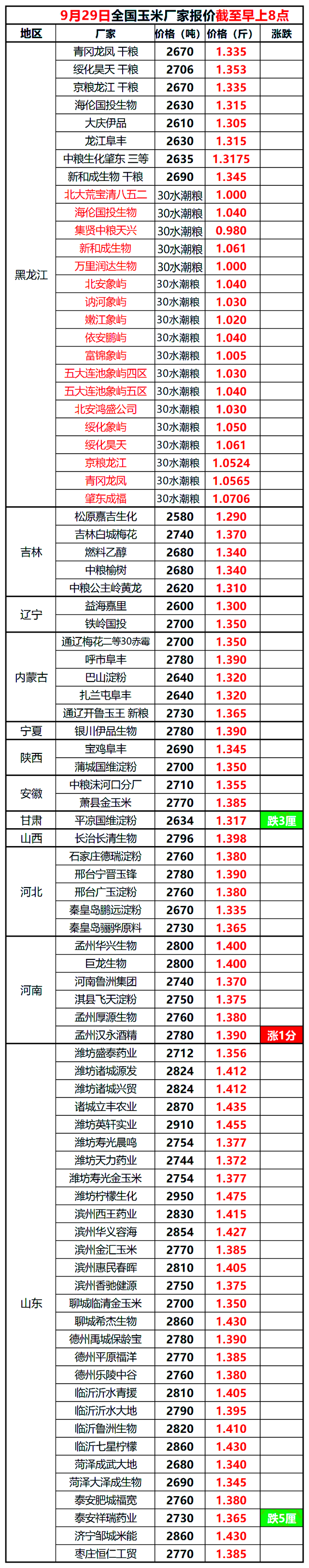 此前,由于国庆假期前,深加工企业玉米有备库的意愿,叠加,深加工企业开工率逐步恢复,陈粮玉米库存不断减少,玉米价格有趋势上涨的预期!但是,随着节日临近,新粮玉米上市陆续增多,新陈玉米价格逐步并轨,市场呈现震荡回落的表现!