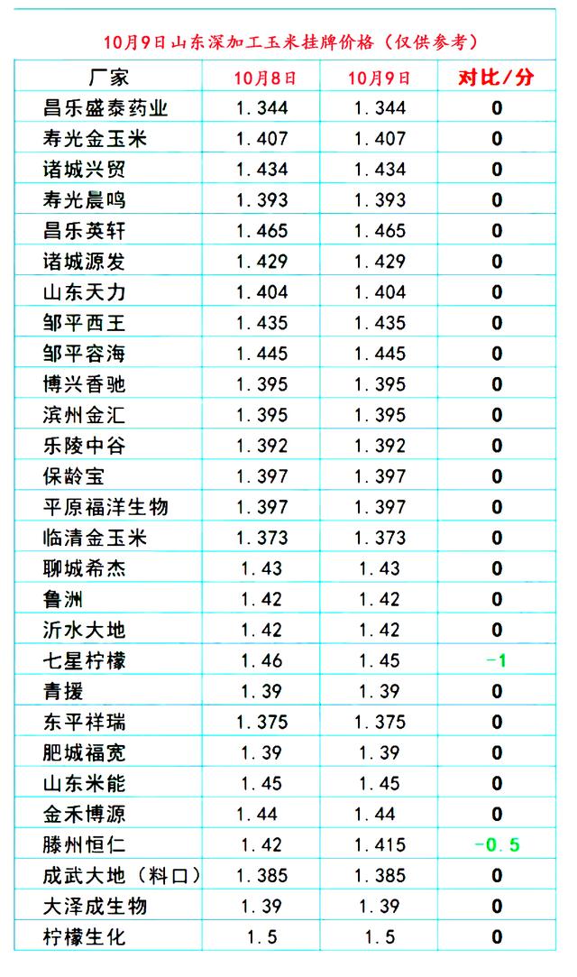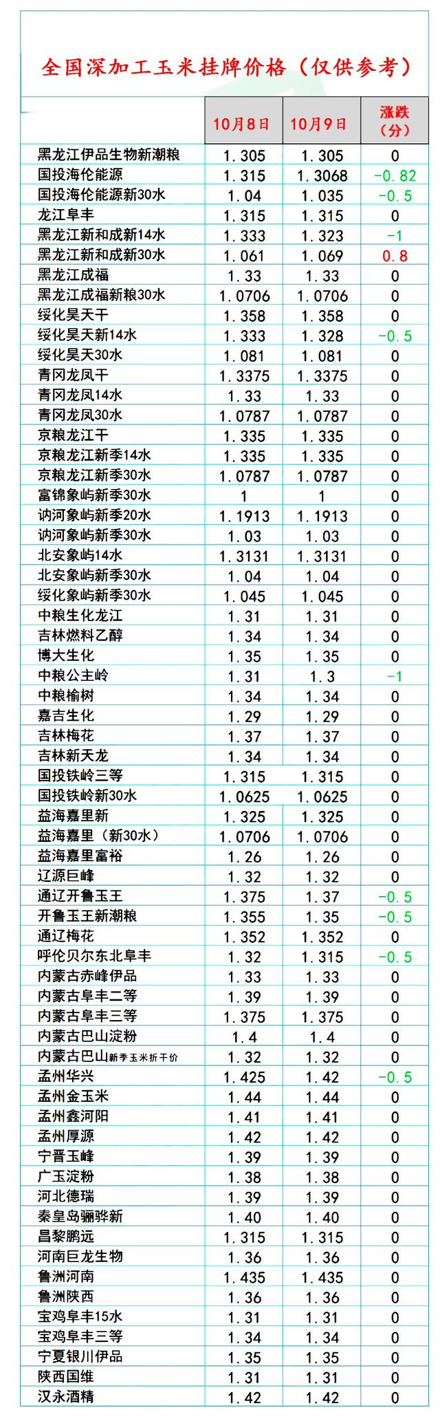 而在华北以及黄淮市场,随着新粮上市逐步增加,企业按需补库,深加工报价以横盘偏弱为主,其中,孟州华兴报价下跌10元,河北、河南等,主流深加工报价横盘1.38~1.44元/斤,在陕西、山西部分工厂报价徘徊在1.31~1.35元/斤!