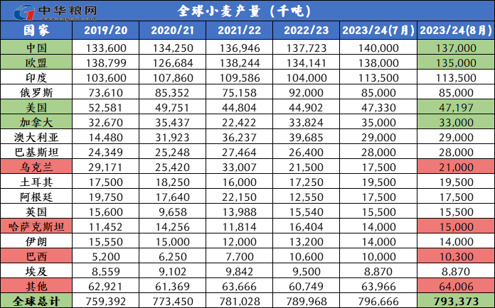 截至8月1日,印度政府粮仓的小麦库存为2830万吨,比10年平均水平低20%。而今年,印度的小麦产量预计比政府预估至少低10%。