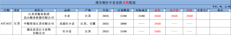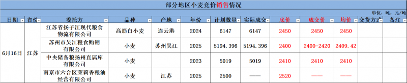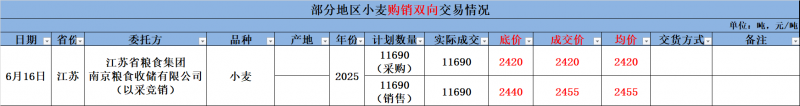 6月16日江苏省地方小麦交易结果