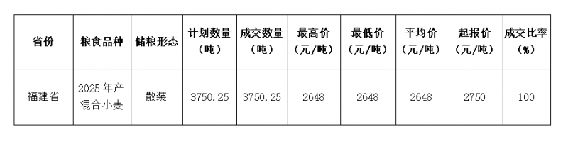 8月20日福建省福州市连江县地方储备粮轮换竞价采购交易会成交结果