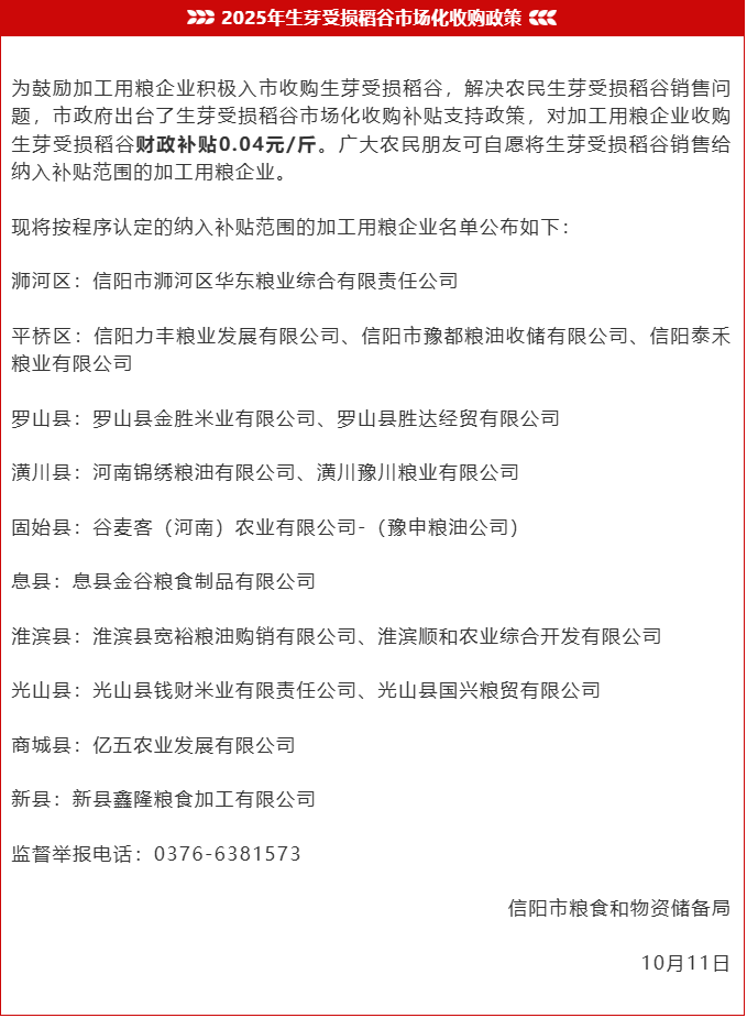 盐丰稻谷:主流到厂价2700-2820元/吨,新粮,较上一工作日价格下跌90元/吨。随盐丰大米主流出厂价3860-3960元/吨。辽星稻谷主流到厂价2820-2920元/吨,新粮,较上一工作日稳定。辽星大米主流出厂价3940 -4020元/吨,新粮,较前一工作日稳定。