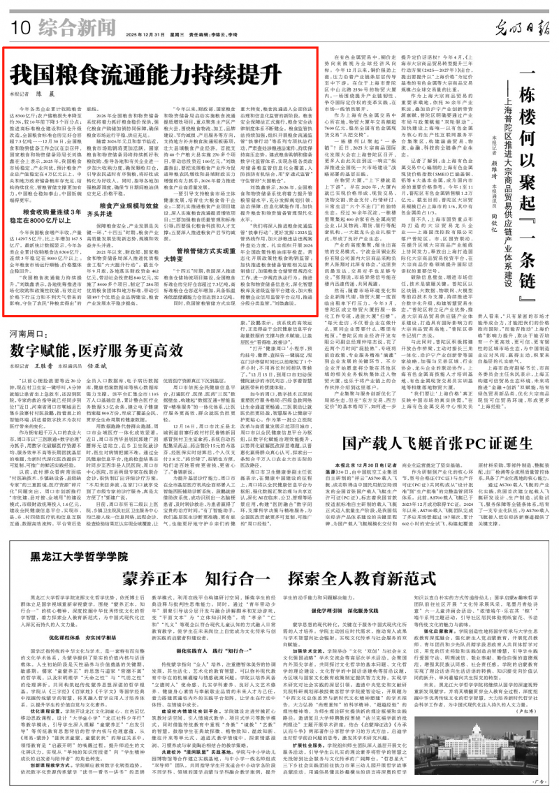 “我国粮食流通能力持续提升。”刘焕鑫表示,各地统筹推进市场化收购和政策性收储,有效应对价格下行压力和不利天气带来的影响,守住了农民“种粮卖得出”的底线。